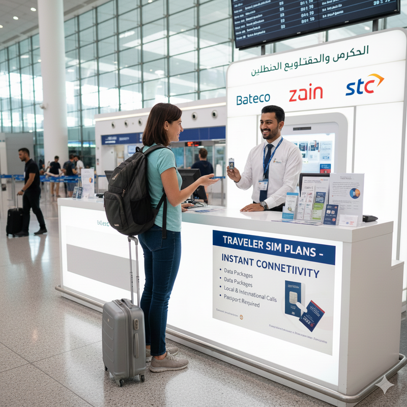 - Providers available: It has major companies such as Batelco, Zain, and STC, which provide various prepaid plans specifically designed to suit travelers such as data, local calls and international minutes.