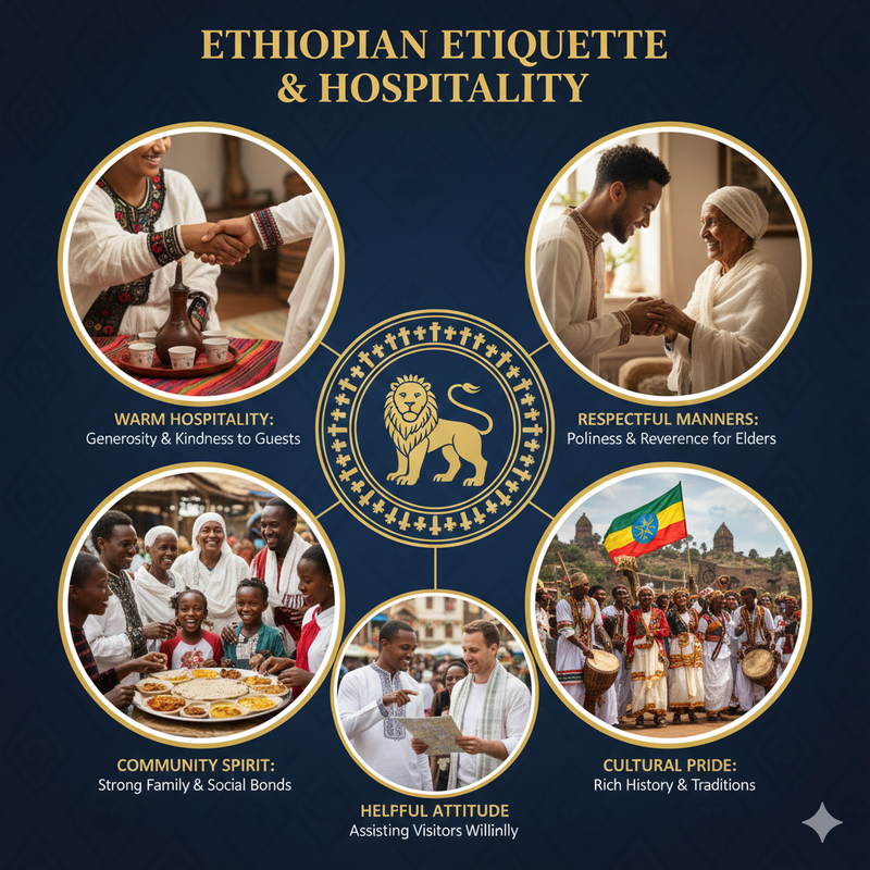 Ethiopian people are widely known for their warm, respectful, and community-oriented nature.
